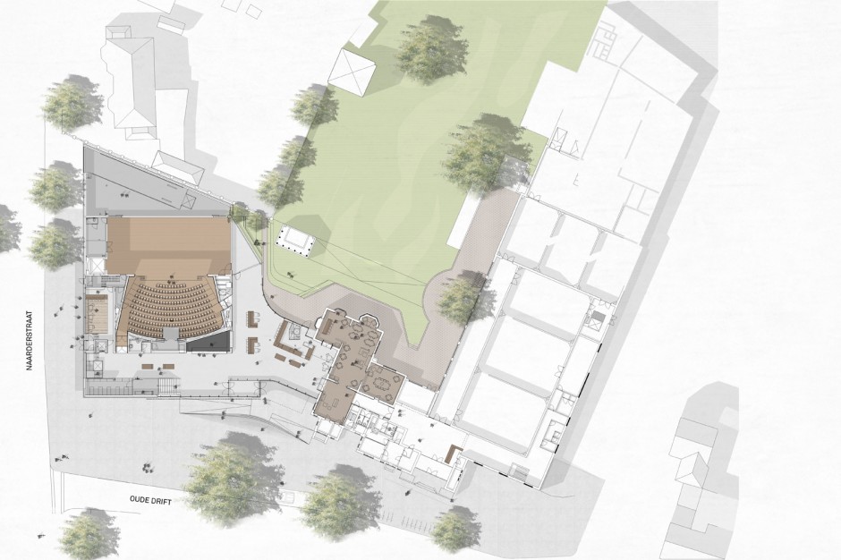 Singer Laren is een complex met museum, theater, een historische villa en een beeldentuin en beheert de nalatenschap van William & Anna Singer. Het oude theater, wat in slechte bouwtechnische staat is, wordt herbouwd. Dit wordt aangegrepen om een nieuwe foyer te maken, die zichtbaar is en zich opent naar Laren. De ruimte wordt de centrale entree voor alle functies, maar verbindt ook de straat en de tuin met elkaar. De beeldentuin wordt op het dak van de foyer doorgetrokken, waar een daktuin en openluchttheater ontstaat.
